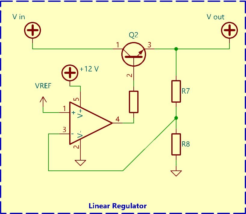 The op-amp drives the transistor (Q2) in its linear region to drop the required voltage such that the voltage at the non-inverting terminal matches the reference voltage.
