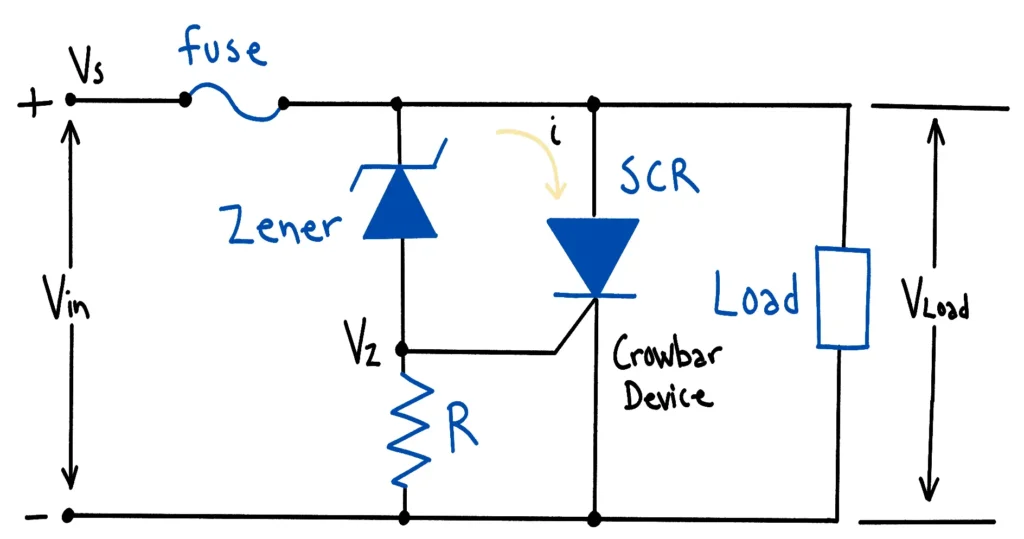 - Not a true OVP method. Voltage can still be applied until the fuse opens while the SCR has not been triggered. Sensitive circuitry like MOSFET gates can be destroyed practically instantly by exceeding their gate-source ratings.