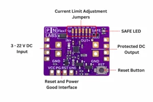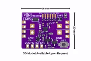 Le module PN Labs FlexTrip est un fusible électronique unidirectionnel plus une diode idéale conçus pour 3-22 V avec jusqu’à 5 A de courant continu. Doté de niveaux de surintensité réglables de 0,5 à 5,5 A via des cavaliers de soudure, il s’adapte parfaitement à une plaque d’essai standard et possède même des bords crénelés, ce qui le rend approprié pour le soudage à un PCB plus grand.