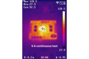 - Fonctionnalité d’arrêt thermique et fusible CMS intégré : Si le courant continu est dépassé et que la carte surchauffe, le circuit intégré est doté d’une fonction d’arrêt thermique qui se déclenche autour de 140-150 °C. Soyez assuré qu’il existe également un fusible de 8 A en série sur le module en dernier recours au cas où une surtension rapide détruirait le circuit intégré avant que l’arrêt ne puisse répondre.