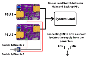Pour que les alimentations partagent la charge, nous avons constaté qu’elles doivent généralement être à moins de 0,5 V l’une de l’autre.