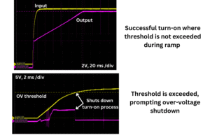 Le module réactivera automatiquement la sortie une fois que la tension d’entrée descendra d’environ 0,5 à 1 V en dessous de la limite OVC, ce qui permettra une récupération transparente après les pics transitoires.
