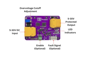 Le PN Labs Protect est un module de protection compact et haute performance conçu pour protéger vos appareils électroniques alimentés en courant continu contre les surtensions, l’inversion de polarité et les incidents d’alimentation.
