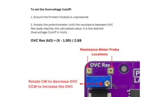 Le module Protect permet aux utilisateurs de définir avec précision le seuil de coupure de surtension en ajustant le potentiomètre intégré, qui contrôle la résistance étiquetée OVC Res.