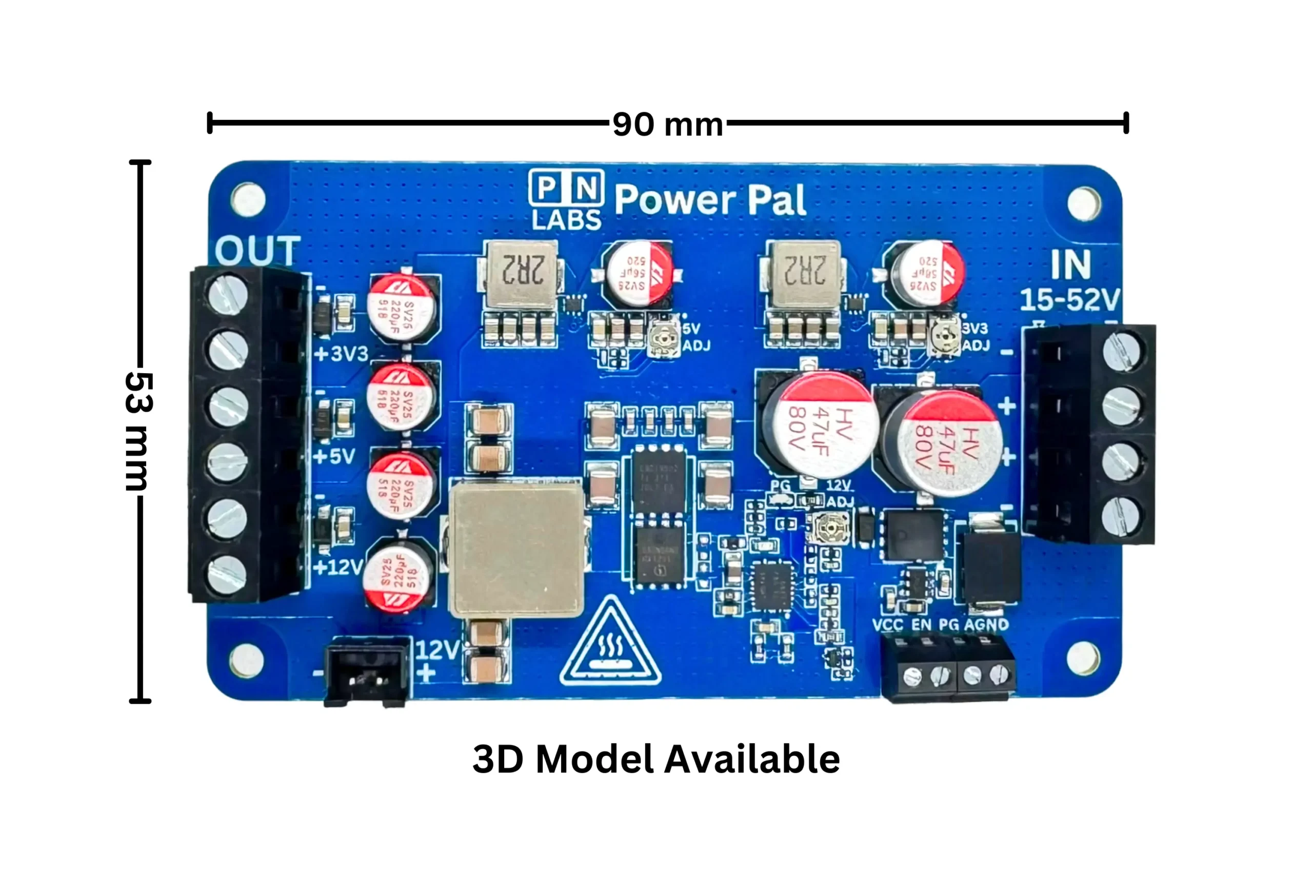 Power Pal is a high-power, triple-output DC-DC buck regulator designed to deliver clean, stable, multi-voltage power from a single high-voltage source.